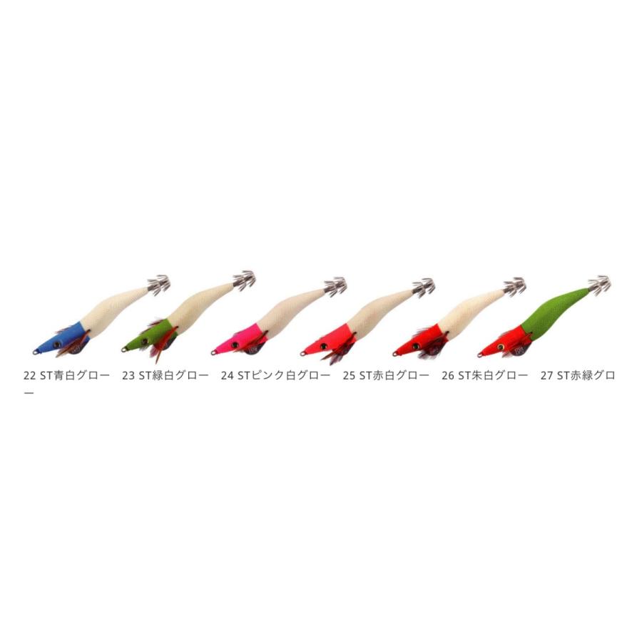 エギマル天空EMPTYは、オールブラック、ST赤緑グロー、ST赤黄グロー、レッド/オールパープルのカラーバリエーションを持っており、さまざまな水中環境やイカの活性に合わせた選択が可能です。