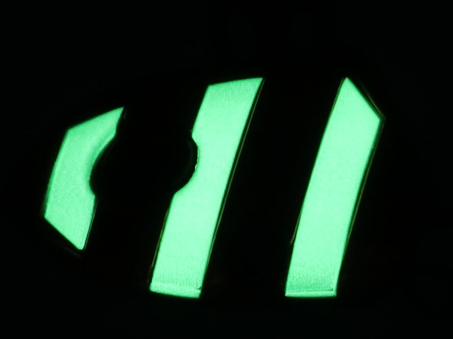 ゴールド系の反射に加え、グローゼブラ(蓄光ライン)が入ることで、低光量下でも抜群の存在感を発揮する万能カラーです。