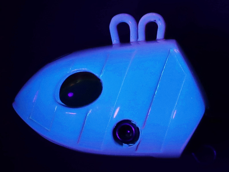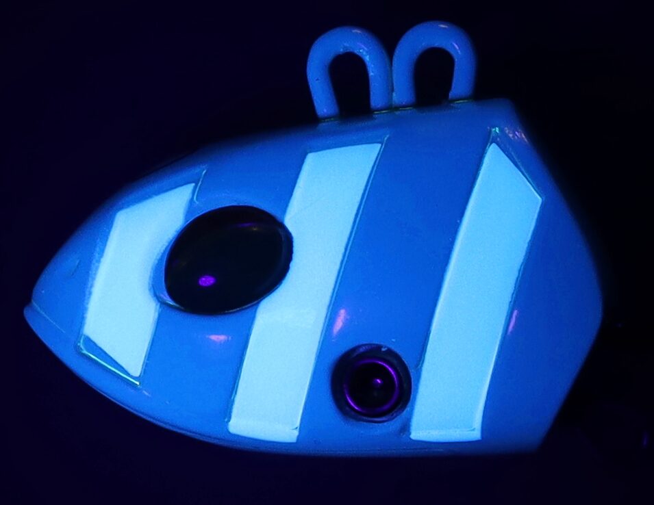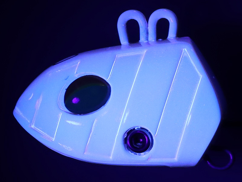 まず「ケイムラ(UV)」とは、紫外線に反応して青白く発光する特殊塗料です。水深が深く、可視光が届きにくい環境でも、ケイムラの波長は比較的長く届くため、魚にとっては“ぼんやりと光る生命感”として認識されます。一方、ミラーは強い光を「点の輝き」として反射します。